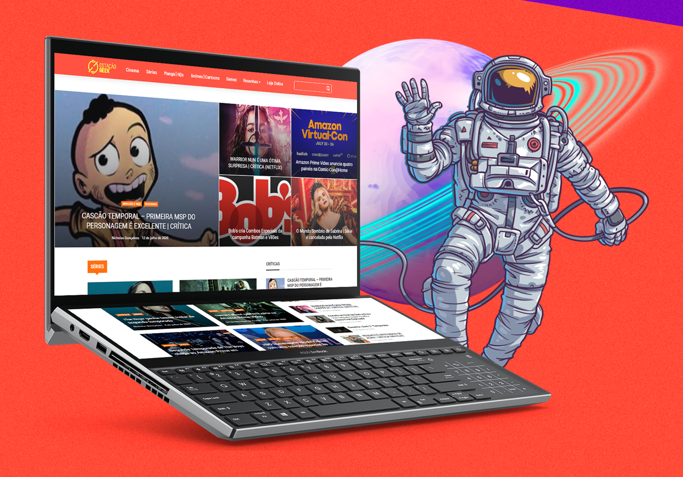 A ideia do rebrand do site / canal de cultura pop veio da necessidade de reposicionamento do cliente, que visa agregar à marca uma conexão maior com seu público e uma maior credibilidade junto ao mercado. Assim resignificamos o naming já existente, dando a ideia de que se trata de uma estação espacial, onde se capta todas as informações sobre cultura pop/nerd e as transmite para todo o mundo. Com esse caminho em mente, desenvolvemos um ícone que trouxesse de forma alegórica o conceito e que se conecta com o nome, ao ser construído a partir das suas iniciais e com linhas que se assemelham a um planeta e seus satélites. Ela se soma a uma tipografia clara, moderna porém despojada, dando força e confiabilidade mas sem deixar de lado a descontração e diversão que o assunto pede.